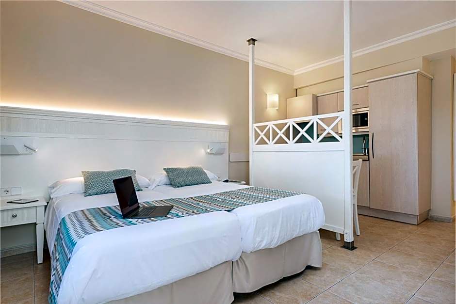 STUDIO WITH BALCONY SINGLE USE + 1 BABY is 323 square feet and includes 2 single beds 80-130 width.